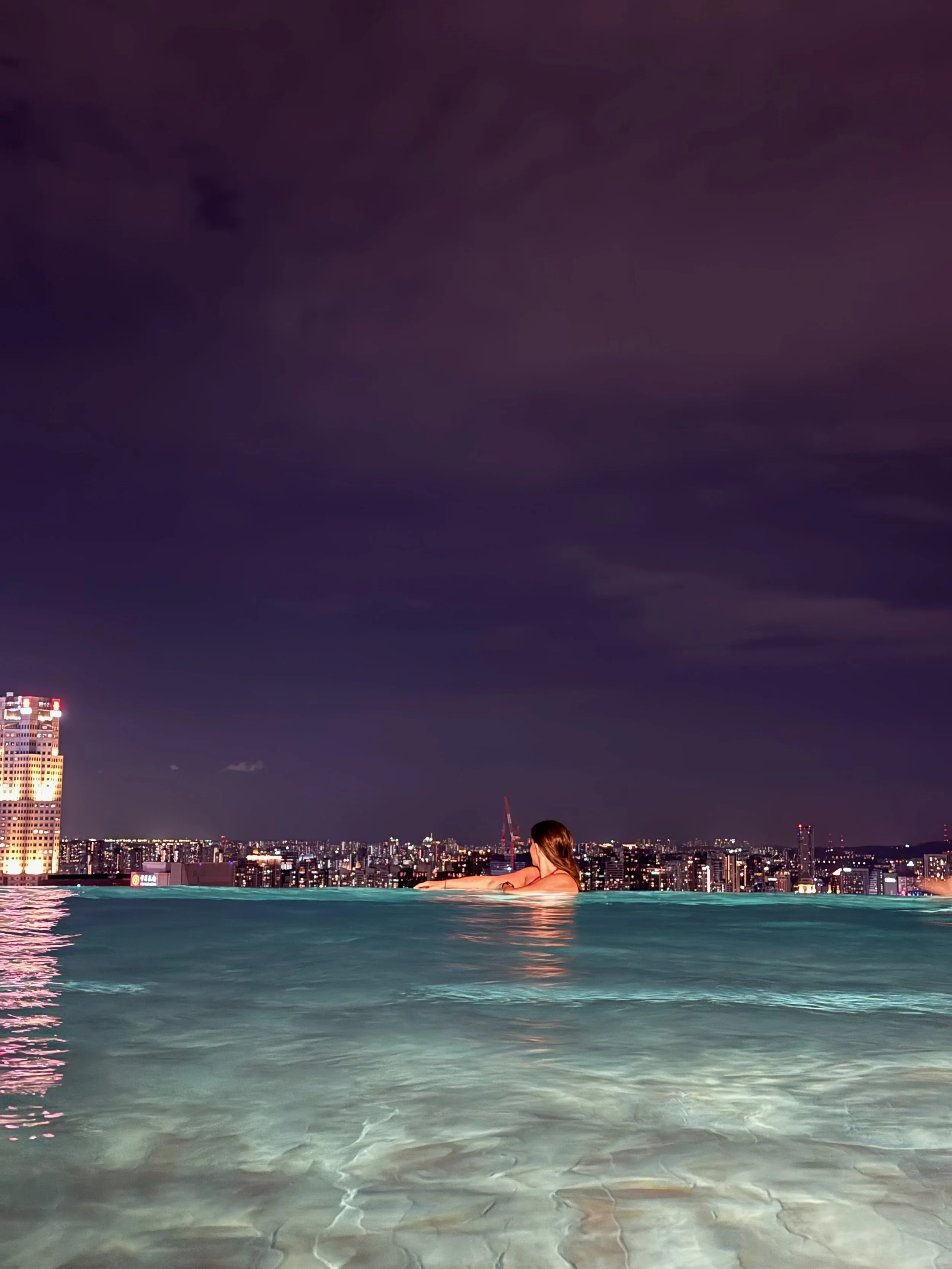 The next morning, I woke up early around 6am and headed straight to the infinity pool. I swam, relaxed, and watched the city slowly wake up below me. At 8am, the bar finally opened, and I ordered an oat milk cappuccino straight to my sunbed. It was one of those moments where time feels irrelevant.